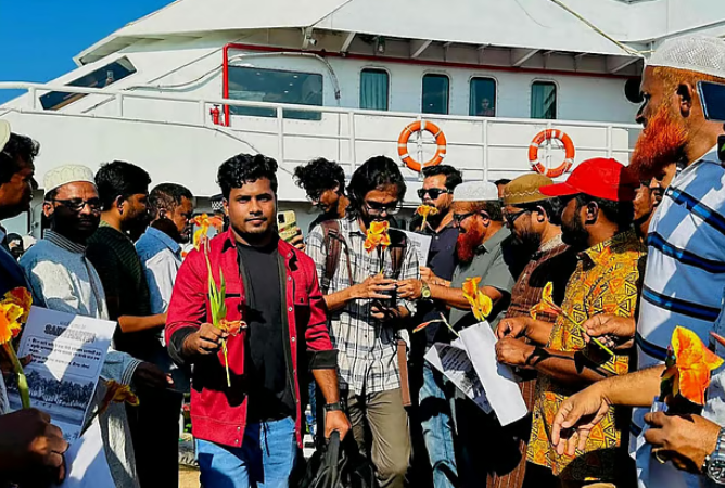 বঙ্গোপসাগরের বুকে ৮ বর্গকিলোমিটার আয়তনের প্রবালসমৃদ্ধ দ্বীপ সেন্ট মার্টিন। দীর্ঘ ১০ মাস বন্ধ থাকার পর আজ সোমবার তিনটি জাহাজে ১ হাজার ১৭৪ জন পর্যটক দ্বীপ ভ্রমণের সুযোগ পেলেন। কক্সবাজার শহরের নুনিয়াছটা বিআইডব্লিউটিএ জেটিঘাট থেকে পর্যটকদের নিয়ে সেন্ট মার্টিনের উদ্দেশে রওনা দেয় তিনটি জাহাজ এমভি কর্ণফুলী এক্সপ্রেস, এমভি বার আউলিয়া ও কেয়ারি সিন্দবাদ। ১২০ কিলোমিটারের বঙ্গোপসাগর পথ পাড়ি দিয়ে বেলা দেড়টার দিকে একে একে জাহাজ তিনটি পৌঁছে যায় সেন্ট মার্টিনের জেটিঘাটে।সেন্ট মার্টিনের চারদিকের পানি স্বচ্ছ ও নীল। জাহাজ থেকে পর্যটকেরা নীল জলে ঘেরা দ্বীপের সৌন্দর্য দেখে মুগ্ধ। জেটিঘাটে পর্যটকদের ফুল দিয়ে বরণ করে নেন বাংলাদেশ ট্যুরিজম বোর্ড, পর্যটন করপোরেশন, পরিবেশ অধিদপ্তর ও স্থানীয় হোটেল মালিকেরা। নতুন অতিথি দেখতে জেটিঘাটে ভিড় করেন দ্বীপের বাসিন্দারাও। বেলা তিনটার দিকে পর্যটকদের দ্বীপে রেখে জাহাজগুলো রওনা দেয় কক্সবাজারের উদ্দেশে।সেন্ট মার্টিন দ্বীপের প্রাকৃতিক সৌন্দর্য ও জীববৈচিত্র্য রক্ষায় পরিবেশ, বন ও জলবায়ু পরিবর্তন মন্ত্রণালয় গত ২২ অক্টোবর ১২টি নির্দেশনা–সংবলিত প্রজ্ঞাপন জারি করে। তাতে বলা হয়, ১ ফেব্রুয়ারি থেকে টানা ৯ মাস বন্ধ থাকার পর ১ নভেম্বর থেকে তিন মাসের জন্য সেন্ট মার্টিন উন্মুক্ত থাকবে। দৈনিক দুই হাজার পর্যটক দ্বীপ ভ্রমণে যেতে পারবেন। তবে নভেম্বর মাসে দ্বীপে রাত যাপন করতে পারবেন না। ডিসেম্বর জানুয়ারি দুই মাস রাতযাপনের সুযোগ রাখা হয়। রাতযাপনের ব্যবস্থা না থাকায় গত নভেম্বর মাসে পর্যটকেরা সেন্ট মার্টিন যাননি।সেন্ট মার্টিন দ্বীপের দোকান মালিক সমিতির সহসভাপতি মৌলভি নুর আহমদ প্রথম আলোকে বলেন, দ্বীপের মানুষেরা দীর্ঘ সময় ধরে পর্যটকের অপেক্ষায় ছিলেন। আজ একসঙ্গে তিনটি জাহাজ থেকে এক হাজারের বেশি পর্যটককে দ্বীপে নামতে দেখে স্থানীয়দের মুখে হাসি ফুটে উঠেছে। এত দিন পর্যটক না থাকায় দ্বীপের কয়েক হাজার মানুষ অভাব–অনটনে দিন কাটিয়েছেন। ২৩০টির বেশি হোটেল, রেস্তোরাঁ, দোকানপাট বন্ধ ছিল। এখন চাঞ্চল্য ফিরে এসেছে।বেলা দুইটার দিকে দ্বীপের পূর্ব সৈকতের বালিয়াড়িতে পা রেখে মুঠোফোনে ছবি তুলতে ব্যস্ত হয়ে পড়েন ময়মনসিংহের পর্যটক ঝরনা-বাহাদুর দম্পতি। এরপর পাশের একটি রেস্তোরাঁয় গিয়ে দুপুরের খাবার সেরে দুজন নেমে পড়েন পশ্চিম সৈকতে। সেখানে প্রখ্যাত কথাসাহিত্যিক হুমায়ূন আহমেদের বাংলোবাড়ি-সমুদ্রবিলাস। বেশ কিছু পর্যটক সমুদ্রবিলাসের ছবি তুলে নেমে পড়েন পাথর স্তূপের নীল জলের সমুদ্রসৈকতে।ঝরনা ইসলাম বলেন, ‘জীবনের প্রথম সেন্ট মার্টিন দেখে মুগ্ধ না হয়ে পারছি না। ছবি এবং ভিডিওতে যা দেখেছি, বাস্তবে তার চে