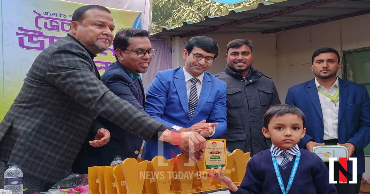 ভৈরব উদয়ন স্কুল নিউটাউন শাখায় বার্ষিক ফলাফল ঘোষণা ও পুরস্কার বিতরণ অনুষ্ঠানে পুরস্কার তুলে দিচ্ছেন অতিথিবৃন্দ। ছবি- নিউজ টুডে