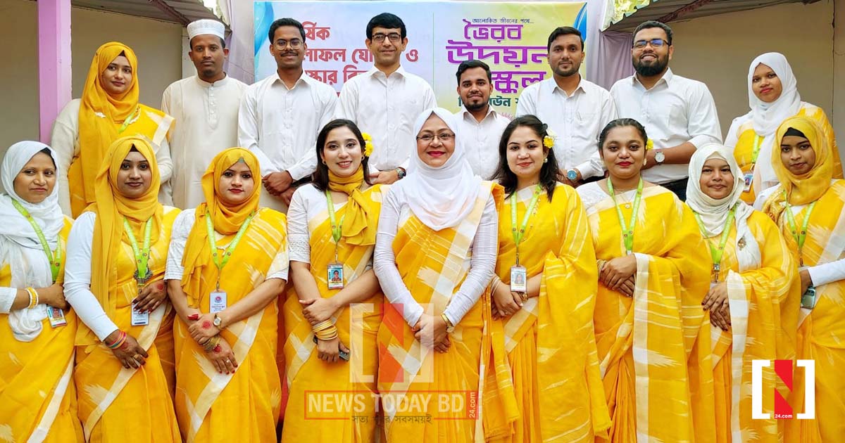 ভৈরব উদয়ন স্কুল নিউটাউন শাখায় বার্ষিক ফলাফল ঘোষণা ও পুরস্কার বিতরণ অনুষ্ঠান শেষে শিক্ষকদের ফটোসেশান। ছবি- নিউজ টুডে